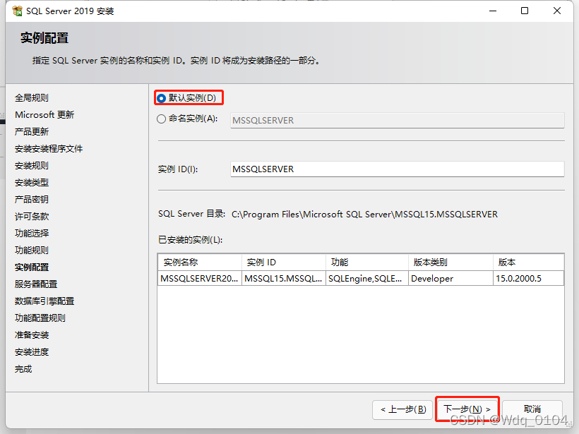 可以使用默認(rèn)實(shí)例,也可以自己命名實(shí)例,點(diǎn)擊“下一步”。