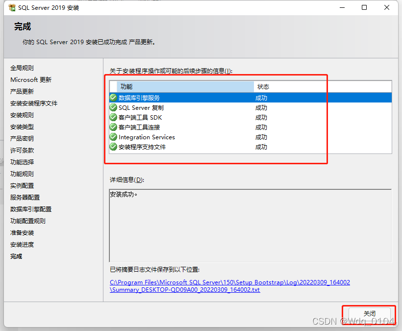 顯示這些信息的時(shí)候,就意味著安裝完成了,點(diǎn)擊“關(guān)閉”。接下來安裝SSMS 管理工具。